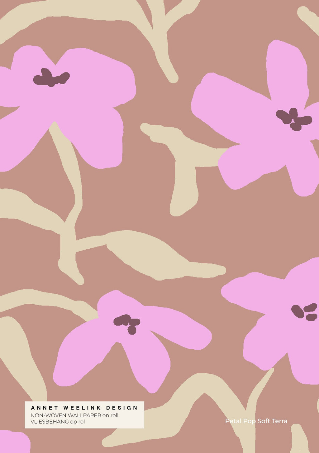 Cette impression unique est dessinée à la main par Annet et imprimée sur du papier peint.